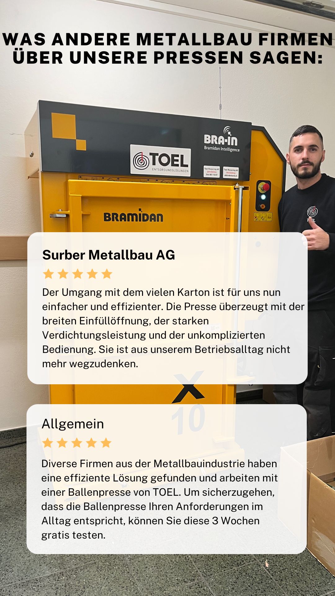 Im Metallbau fallen täglich grosse Mengen Karton an – etwa durch Verpackungen von Profilen, Bauteilen oder Zubehör. Unverpresst benötigt Karton viel Platz, behindert die Abläufe in Werkhalle und Montagebereich und verursacht unnötige interne Transportwege.